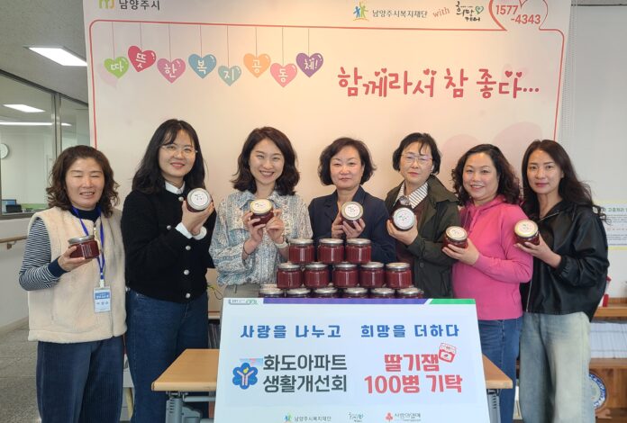 남양주시 화도읍 아파트생활개선회(회장 김홍래)는 지난 3일 취약계층을 위한 딸기잼 100병(50kg 상당)을 동부희망케어센터에 전달했다.