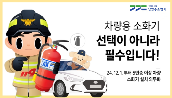 남양주소방서(서장 나윤호)는 지난 8일 남양주 소재 도로에서 발생한 차량 화재를 차량용 소화기로 초기진화해 큰 피해를 막은 사례를 알리며, 차량용 소화기 설치 및 비치 의무화 홍보 강화에 나섰다.